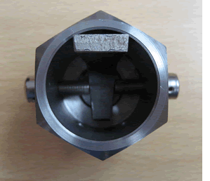 This tool is a hollow steel cup with a closed end. The closed end has a threaded hole to match the breech plug. It also has six, ¼ -28 drilled and tapped holes through each face of the hexagonal body for two clamp screws that hold the plug firmly in place. The tools are available in all the currently used breech plug thread sizes.